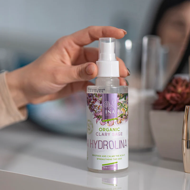 С мощните антимикробни и противовъзпалителни свойства, Био Вода от Салвия – Hydrolina контролира свръхрастежа на Malassezia – гъбички, свързани с пърхот и себореен дерматит. Биоактивните компоненти като линалоол, гераниол, кариофилен и лимонен поддържат здрав микробиом на скалпа и намаляват симптомите на раздразнение и лющене. Салвията също регулира себума, осигурявайки балансиран скалп и здрава коса.