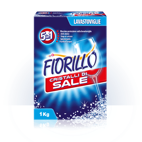 Добавянето на сол Фиорило при всяко миене улеснява действието на перилните препарати, като повишава тяхната почистваща и изсветляваща сила, за винаги блестящи съдове.