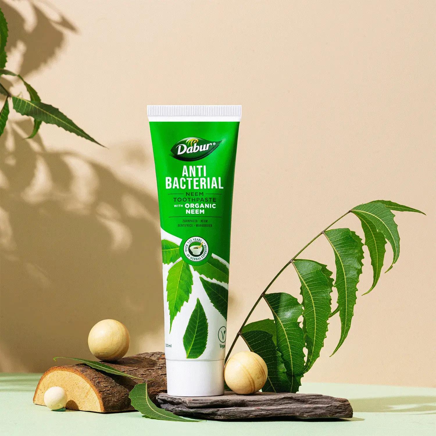 - Антибактериална паста за зъби Dabur с органичен нийм – природна чистота, здрава усмивка и защита всеки ден.