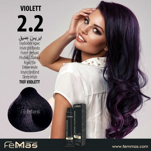 Боя за коса FemMas Наситено лилаво 2.2 е професионална немска крем боя за коса с иновативна технология Балансирана система за формулиране, осигуряваща наситен, дълготраен лилав нюанс без дразнене на скалпа.