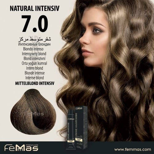 FemMas Наситено русо 7.0 е професионална немска крем боя за коса с иновативна технология Балансирана система за формулиране, която осигурява наситен рус нюанс с дълготраен ефект и без дразнене на скалпа.