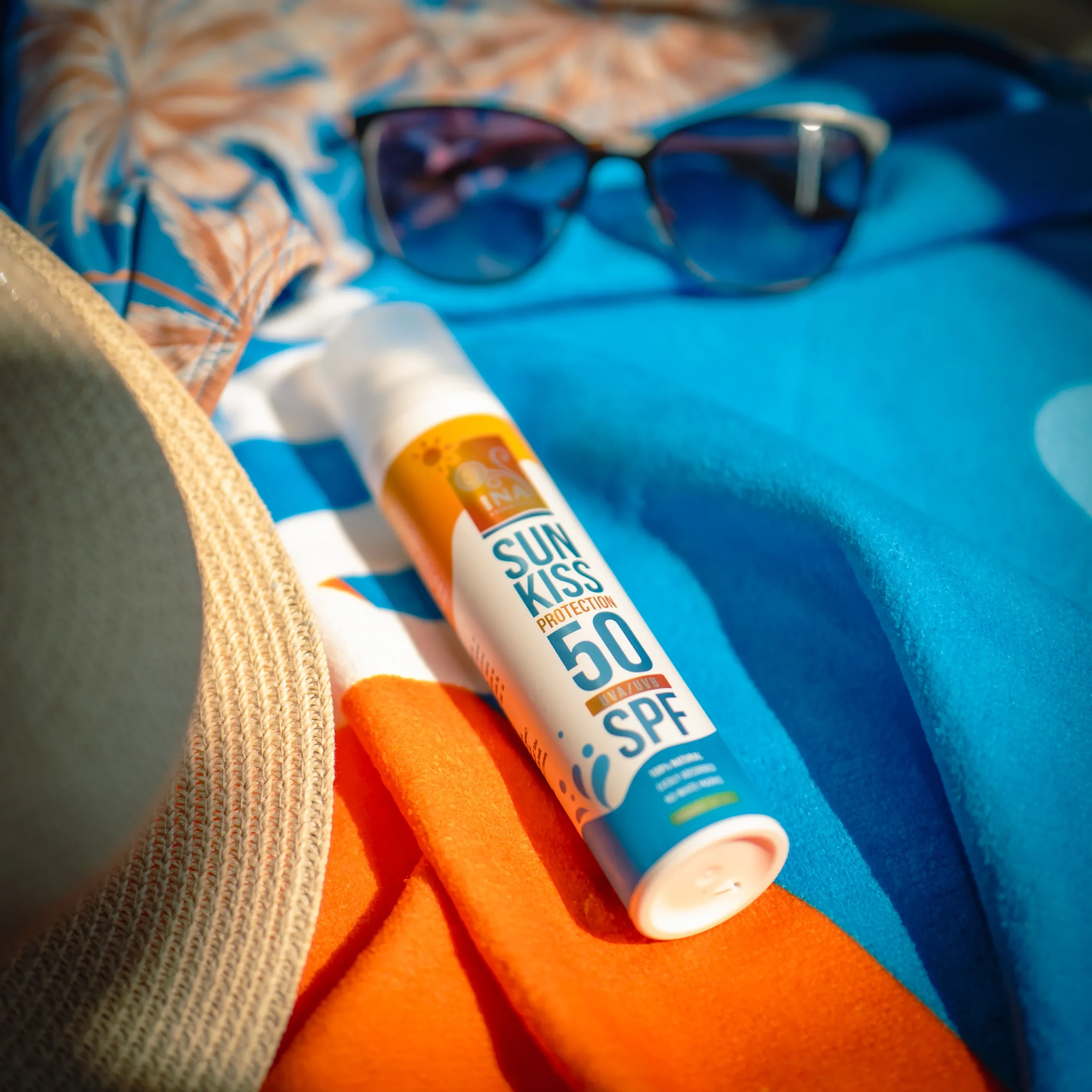 InaEssentials Sun Kiss SPF50 е 100% натурален минерален слънцезащитен крем за лице и тяло, създаден с Био масло от Бяла ела и невидим цинк без нано частици. Подходящ е за всеки тип кожа – включително чувствителна и склонна към акне, както и за деца. С бърза абсорбция, подхранващ ефект и водоустойчива текстура.