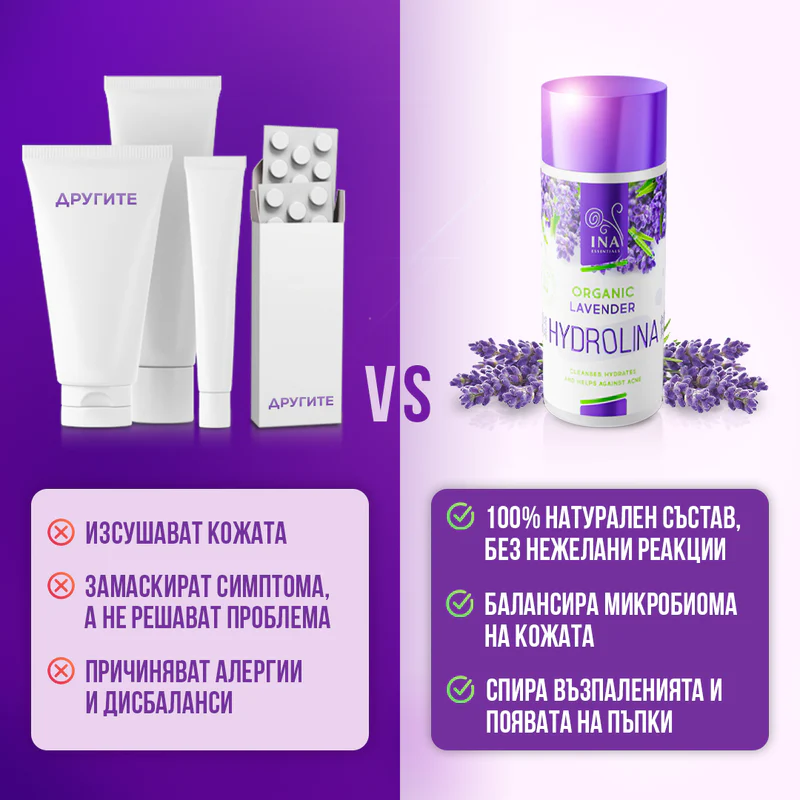С над 100 000 положителни отзива по света, Био Лавандулова Вода – Hydrolina доказва своя трансформиращ ефект върху кожата.