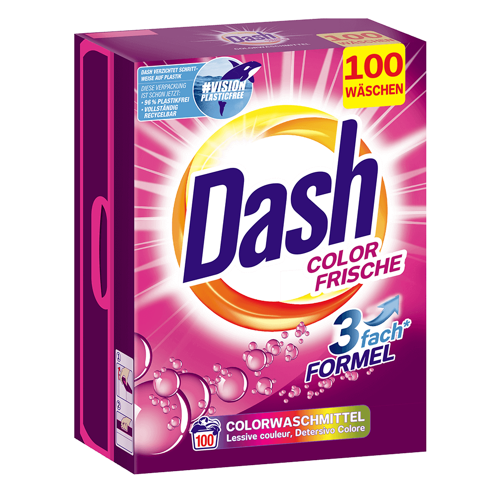 Dash прах за цветно пране 100 пранета е надежден партньор за вашето пране. Осигурява чисти, свежи и ярки дрехи след всяко пране. Изберете Dash и се насладете на безупречна чистота и дълготрайна свежест.