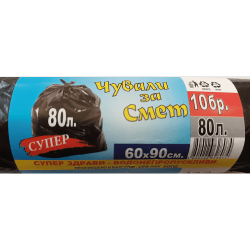 Чували за смет 80 литра, здрави и водонепропускливи, идеални за дома, офиса и обществени помещения. Произведени в ЕС.