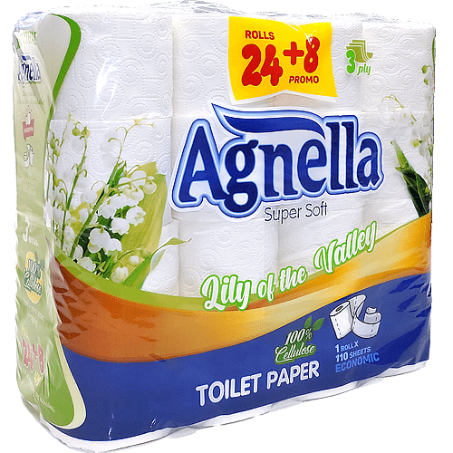 - Ароматизирана и висококачествена тоалетна хартия Agnella, известна с неустоима мекота за максимален комфорт.