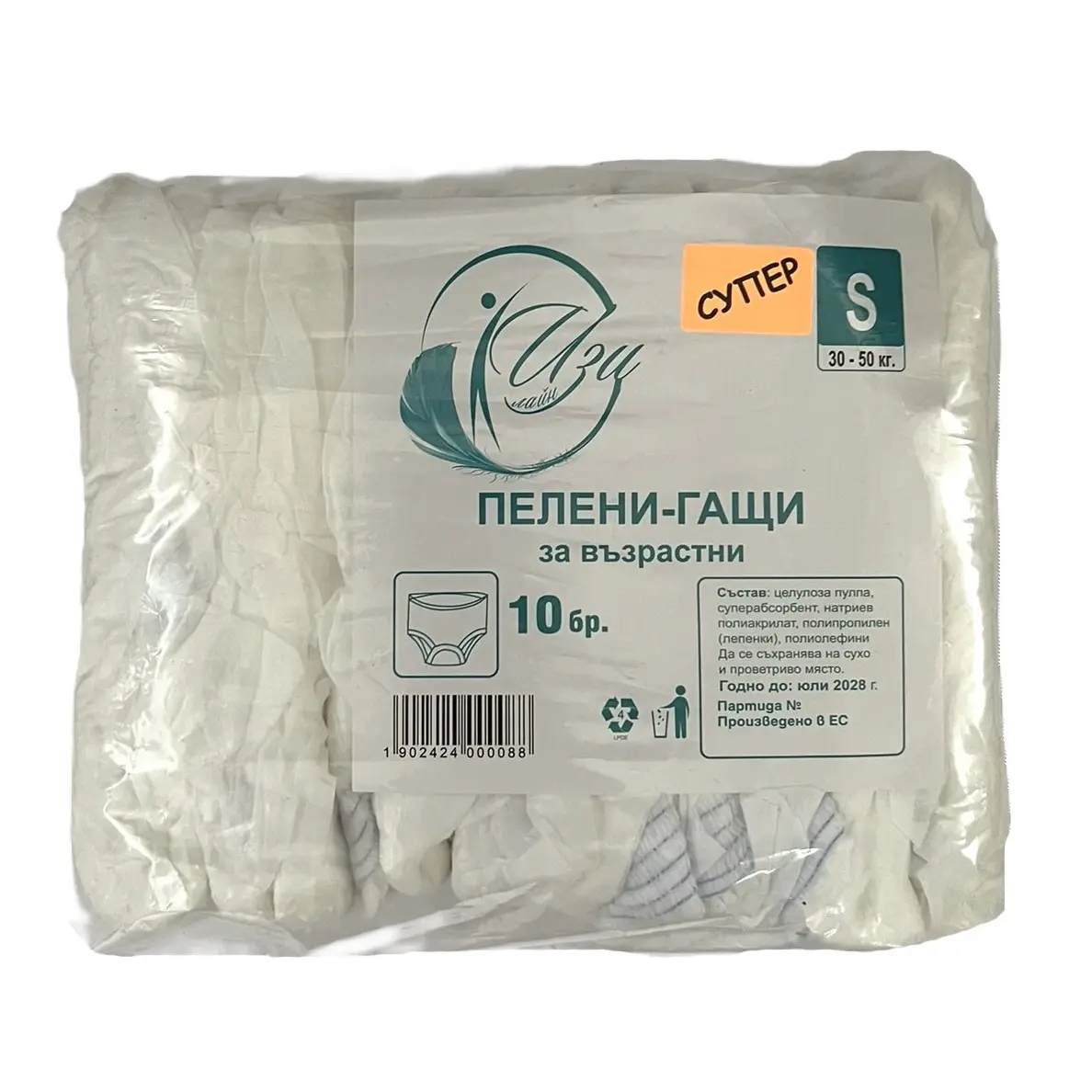 Памперси-гащи за възрастни супер-нощни S (30-50 кг.) улесняват грижата за възрастните, като осигуряват сигурност и спокойствие както за потребителя, така и за неговите близки.