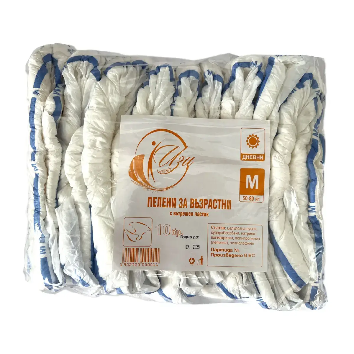 - оПамперси за възрастни дневни M (50-80 кг.) осигуряват дискретност и комфорт през целия ден