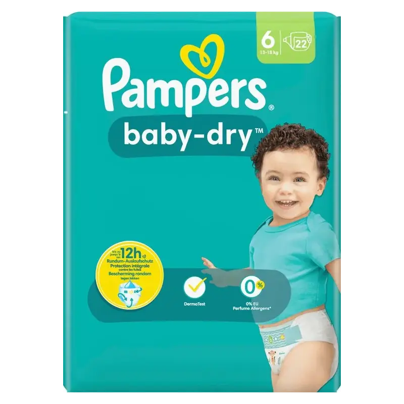 Pampers Baby Dry 6 – 22 броя са хипоалергенни и дерматологично тествани бебешки пелени от ново поколение, които осигуряват отлична защита и комфорт за вашето дете. Подходящи са за деца с тегло над 15 кг.