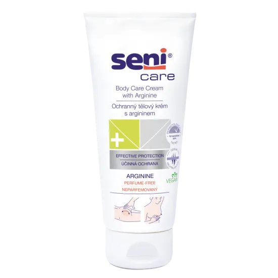 Крем SENI с аргинин е специално създаден за предотвратяване на рани от залежаване (декубитални рани) и раздразнения по кожата при продължително залежаване или ограничена подвижност. Иновативната формула с L-аргинин стимулира микроциркулацията, подобрява регенерацията на кожата и осигурява дълготрайна защита от влага и триене.